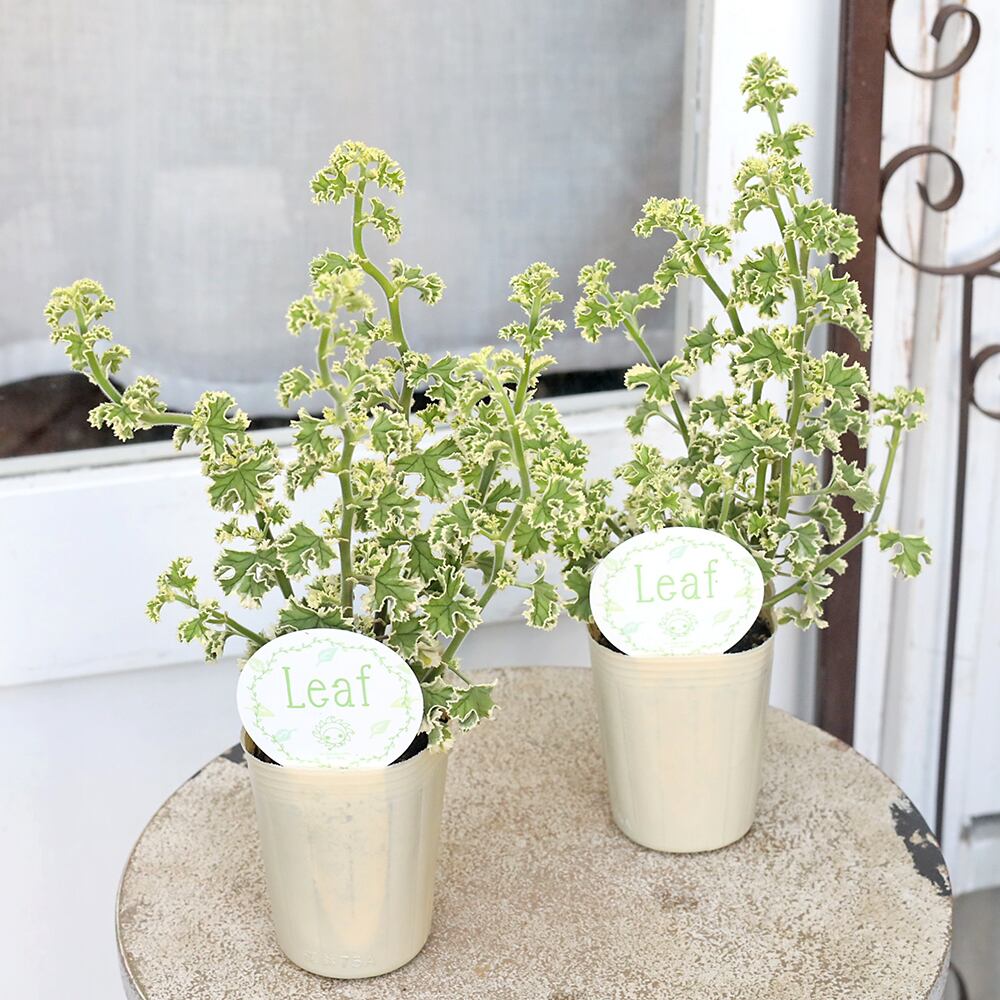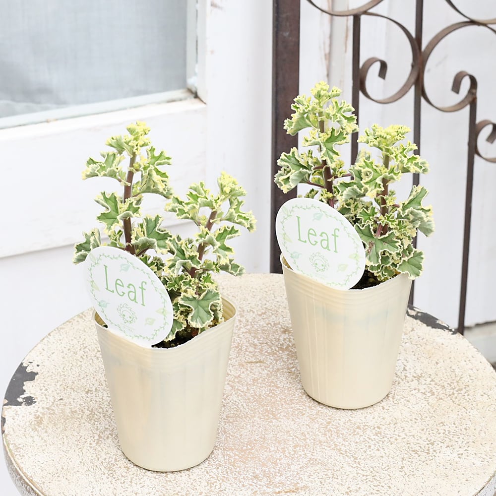 斑入りの葉は細かな切れ込みとウェーブした形、レモンの香りがするセンテッドゼラニウムです。