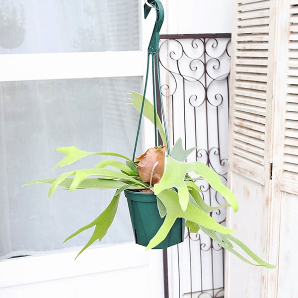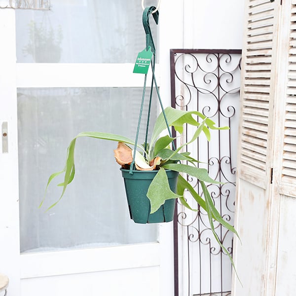 観葉植物 コウモリラン ネザーランド 5号(15cm) 高さ約52cm(フック先端から鉢底まで)です。