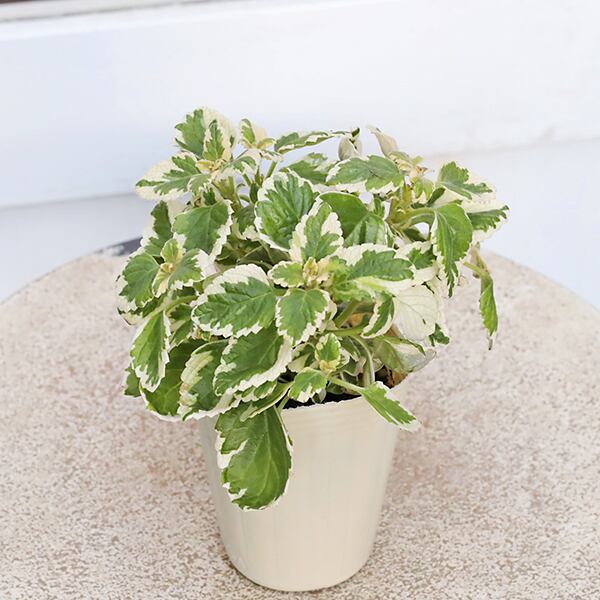 クリーム色とグリーンの明るい斑入りの葉は触れるとミントに似た爽やかな香りのする植物です。