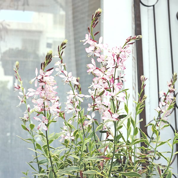 蝶が飛んでいるかのように可憐な花が咲くガウラ。