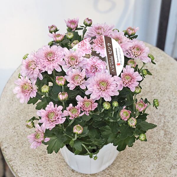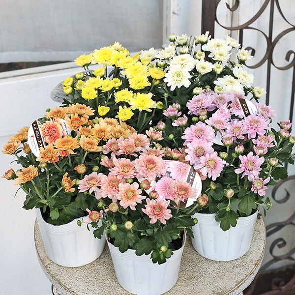 ヨーロッパで誕生したマムは日本のキク(菊)が原種で、寒さにも強く屋外で冬越し可能になります。
