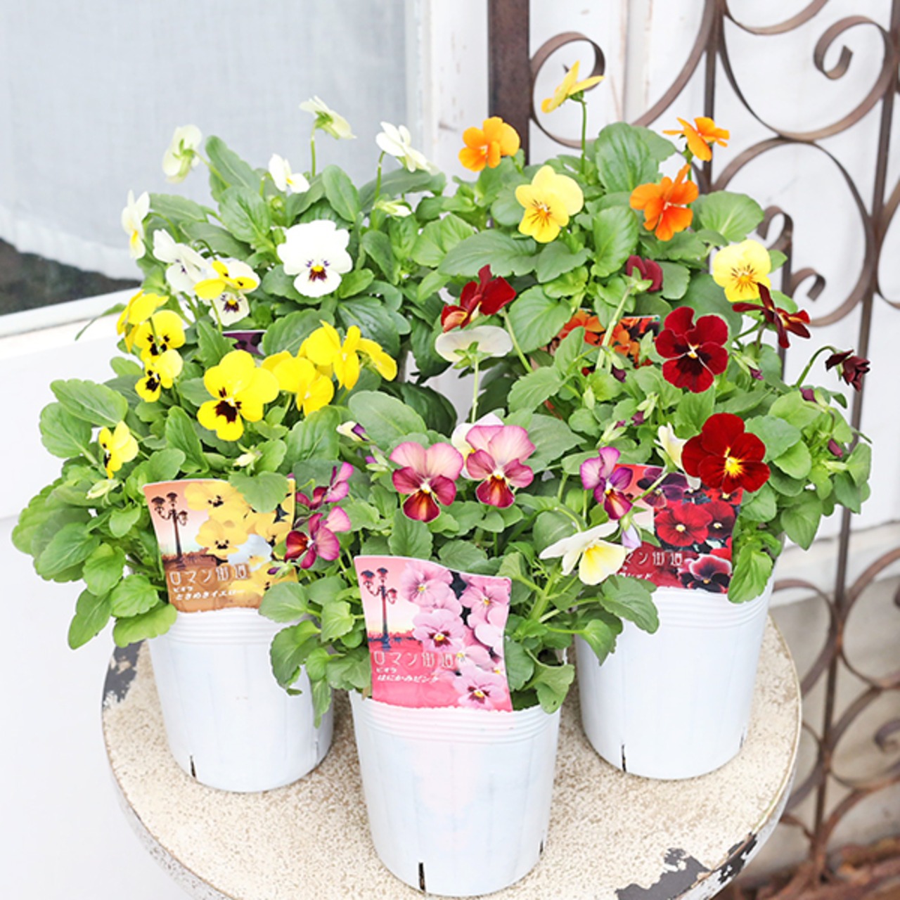 花苗 ビオラ ロマン街道 ピンク レッド オレンジ イエロー ホワイト 3.5号(10.5cm)です。