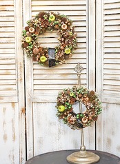 グリーン色を基調にキラキラ輝く木の実やパーツ、ラメを使用しています。