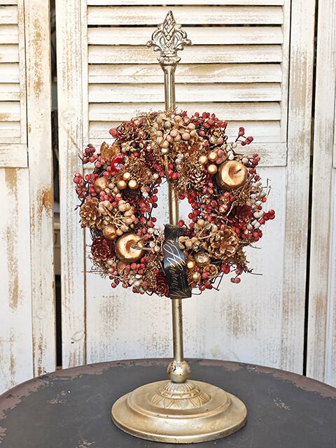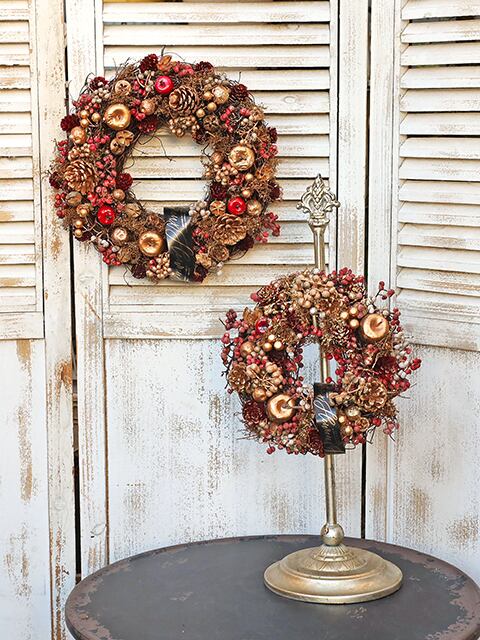 クリスマスリース レッド&ゴールド Sサイズ 天然素材ドライリースです。