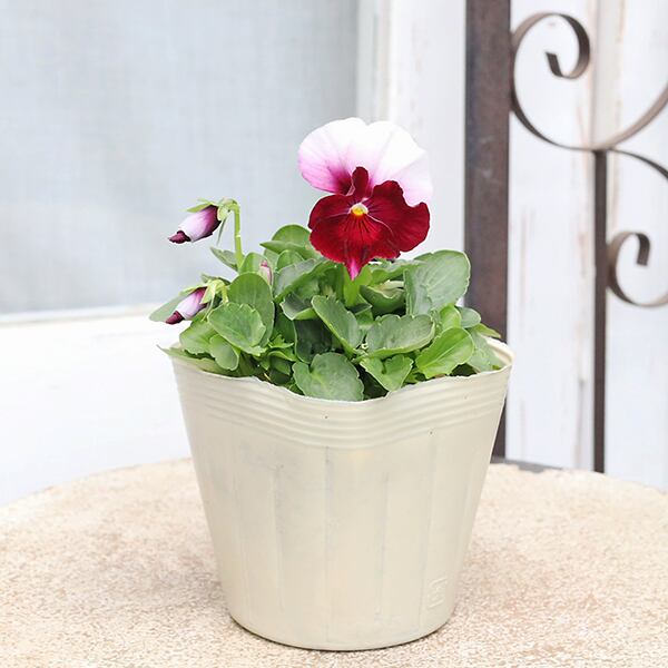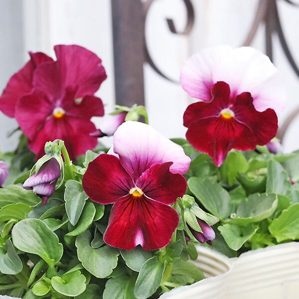 ワインカラーのグラデーションが美しいアンティークタッチ色のパンジーです。