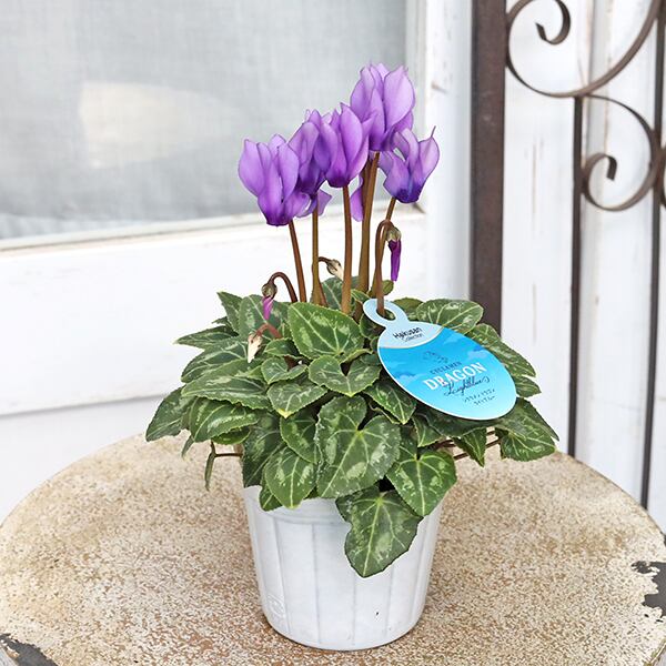 鉢花 シクラメン ドラゴン ライトブルー 3号(9cm)です。