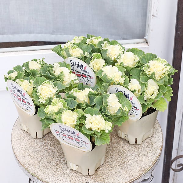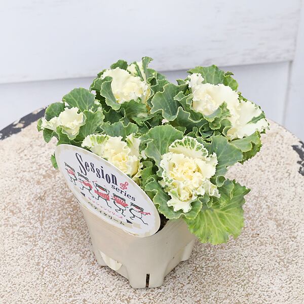 クリームホワイトのお花のような形がとても可愛らしいハボタンです。