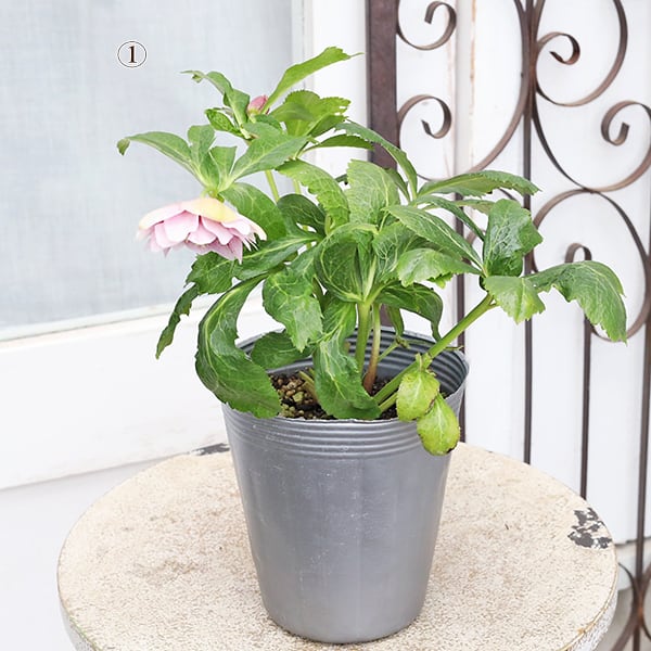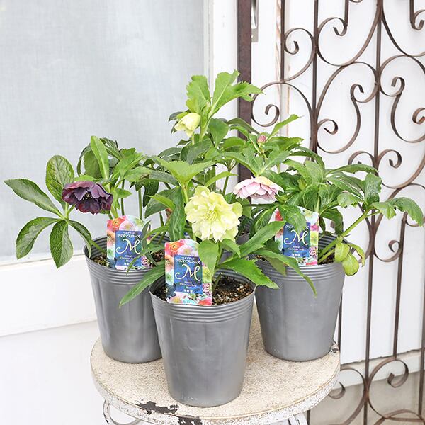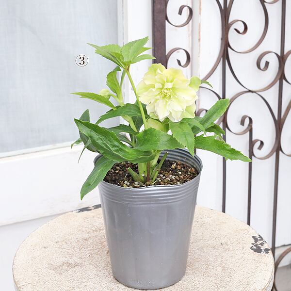 現品販売 花苗 クリスマスローズ 開花株 八重咲き 一重咲き 4号(12cm)です。