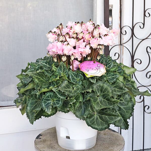 現品販売 鉢花 フリル咲き シクラメン ピポカ パステルピンク 6号(18cm) 高さ約42cmです。