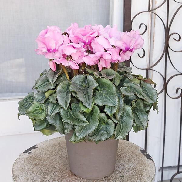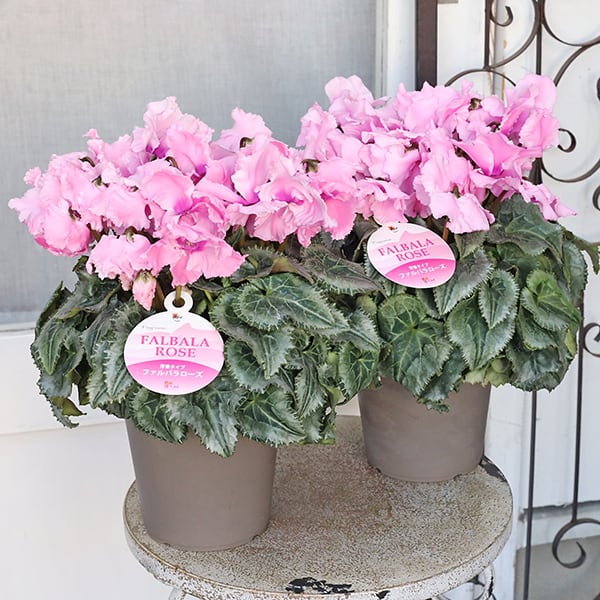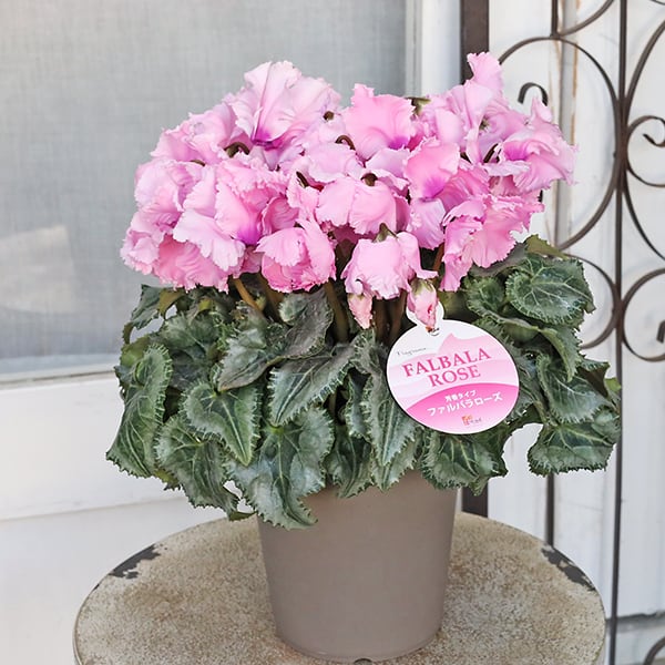 鉢花 シクラメン ファルバラ ローズ 5号(15cm) 高さ約35cmです。