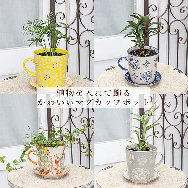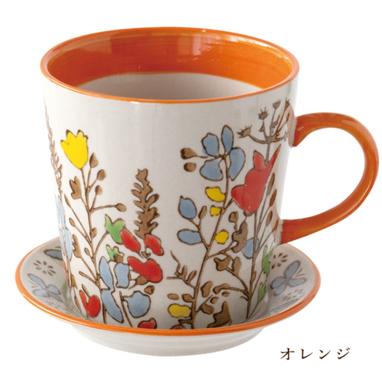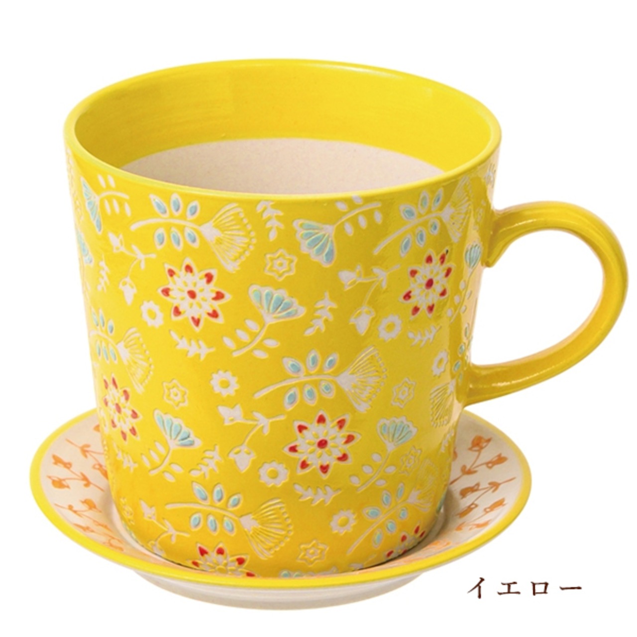 テーブルマグカップ フラワーポット イエロー オレンジ ブルー グレー 植木鉢です。