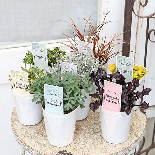 種類は、ガーデンルー、アラビス バリエガータ、カロケファルス プラチーナ、カレックス、ビーツ ブルズブラッド、ベロニカ1、ベロニカ2からお選びください。