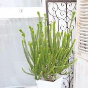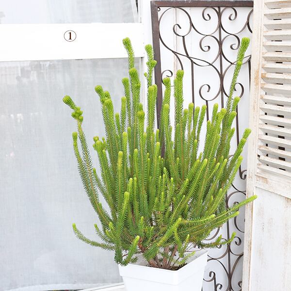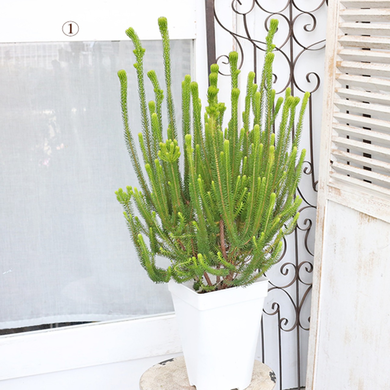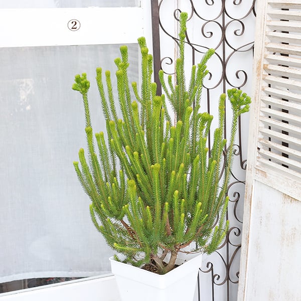 ライムグリーン色の針葉樹のような細い葉、直立に伸びスタイリッシュで個性的なフォルムのエリカ セシリフローラ。