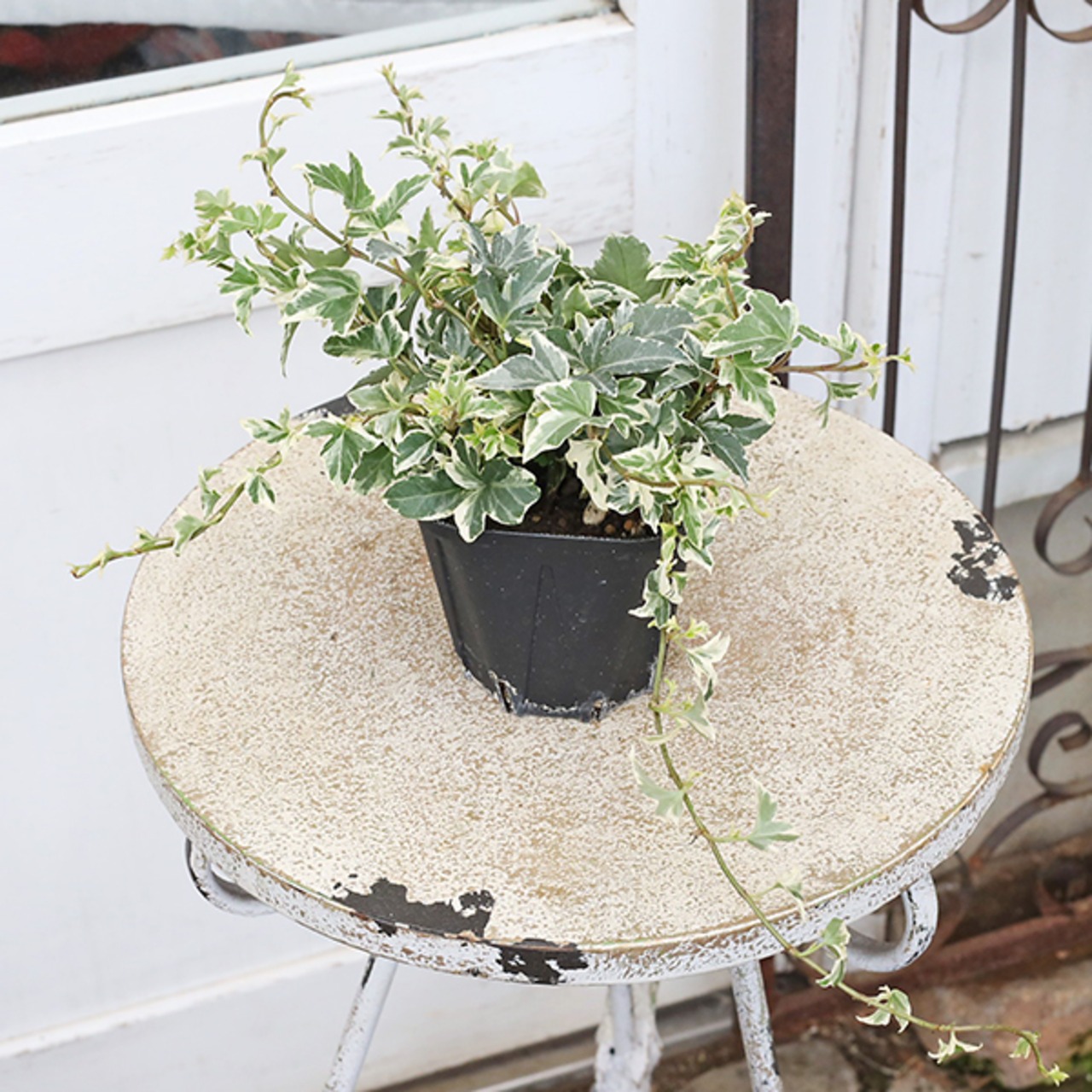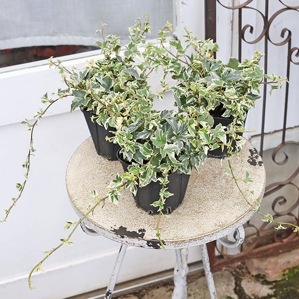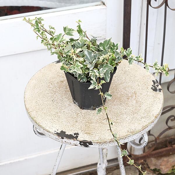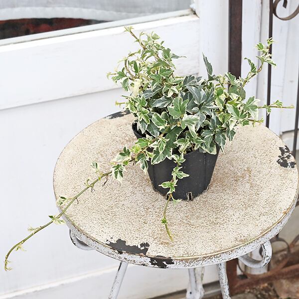 葉は明るいグリーンとホワイトの斑入り、葉は小さめで優しい印象のヘデラです。