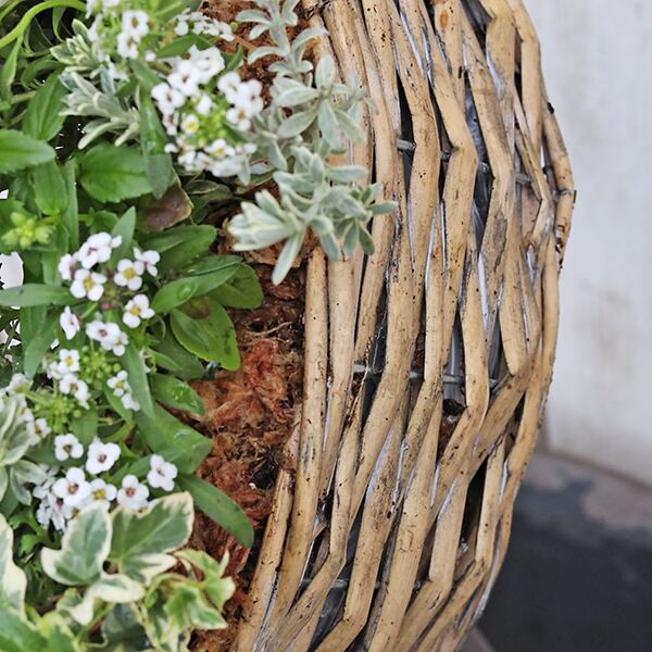 (容器サイズ:W30×H9cm 素材:ワイヤー、柳 色:ベージュブラウン 鉢底排水穴あり)