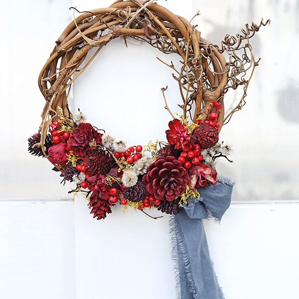 ツイストリースは自然な蔓を活かしたナチュラルなリースです。