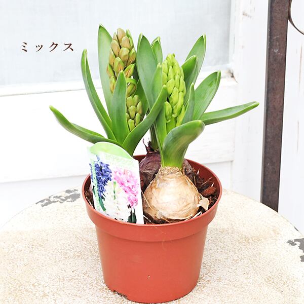 花苗 ヒヤシンス 3球植え レッド ホワイト ブルー ピンク ミックス 4号(12cm)です。