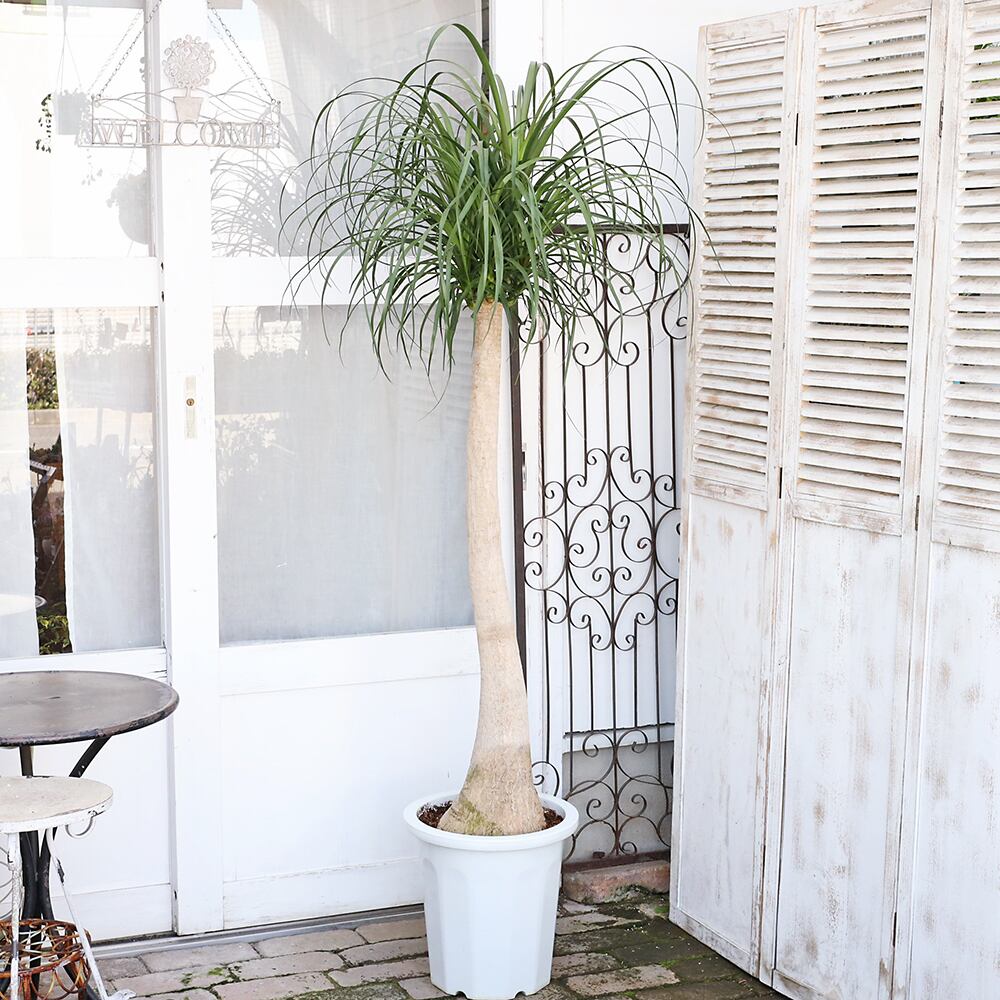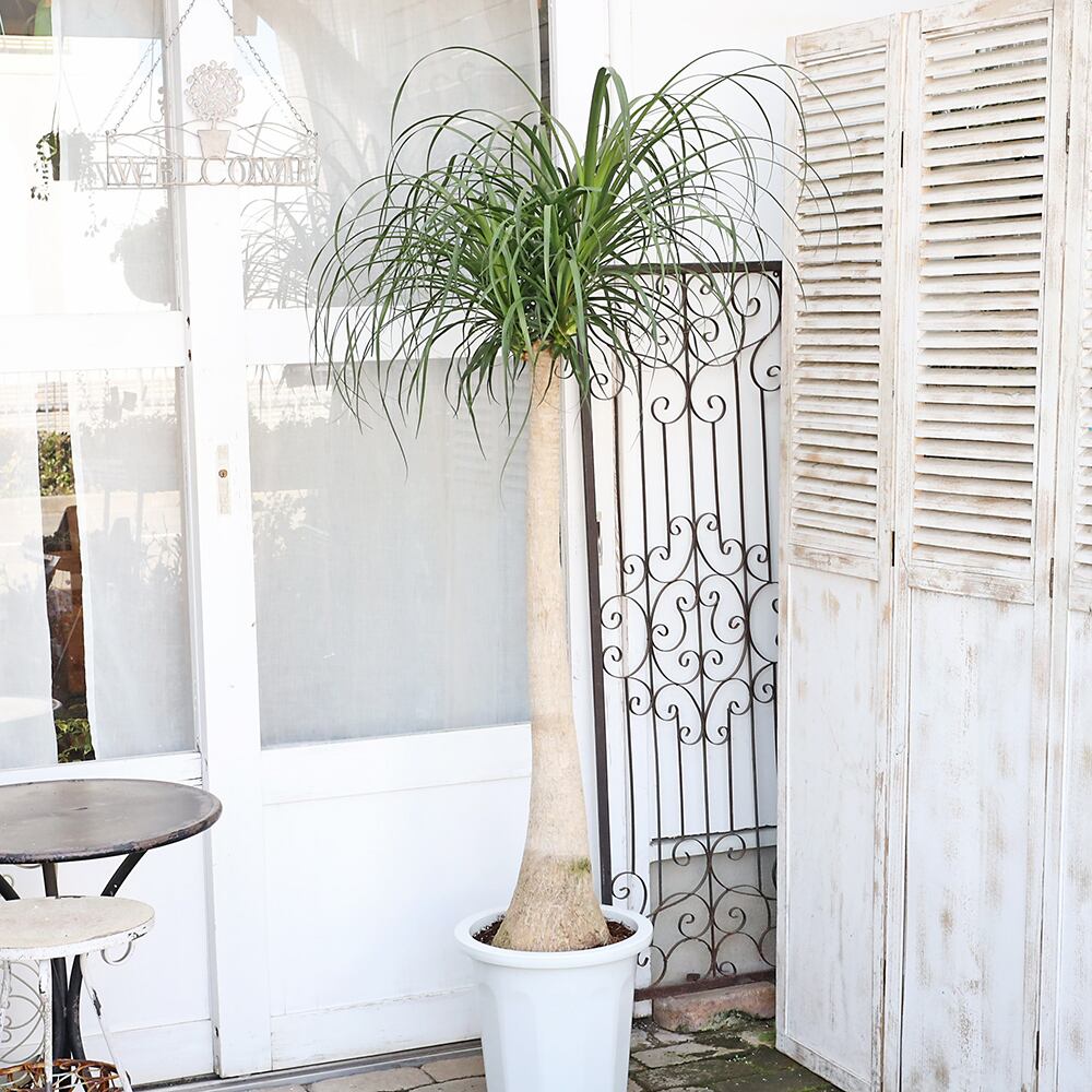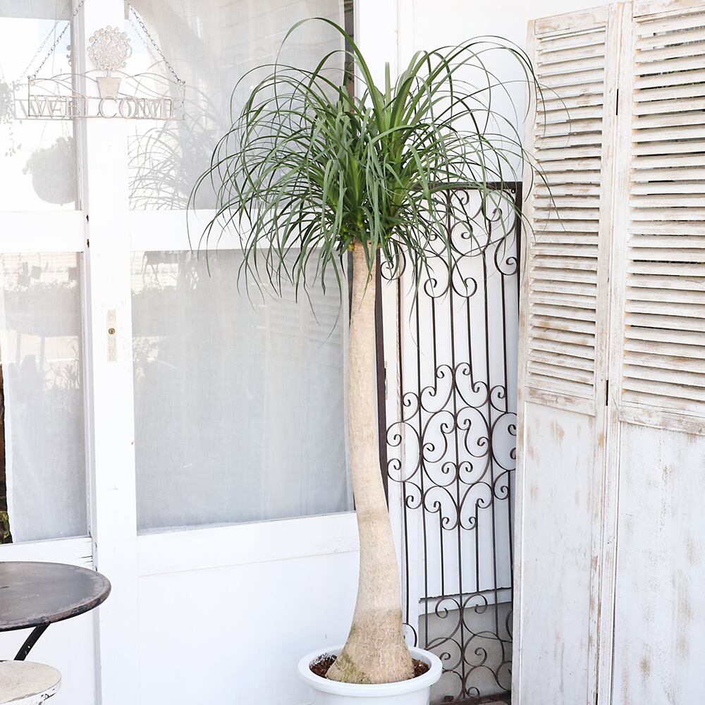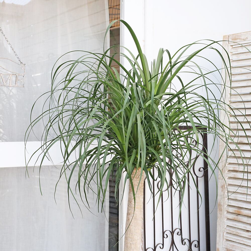 株元の幹に膨らみがあるボトムと細い葉がまるでポニーテールのように生えている個性派で魅力的な植物です。