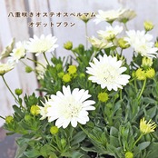 美しいクリームホワイトの八重咲き、華やかなオステオスペルマム オデットブランです。