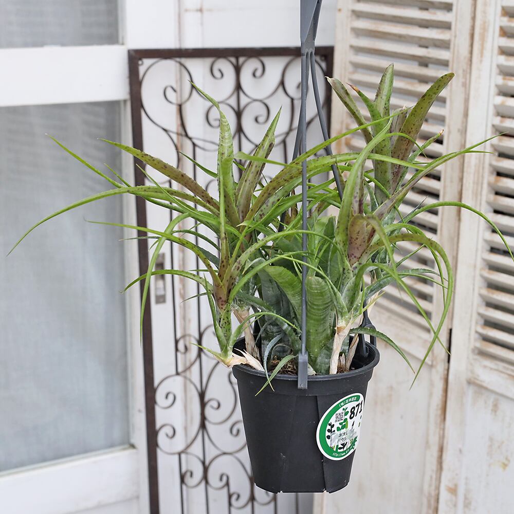 現品販売 観葉植物 ネオレゲリア ディアブロネグロ パウシフローラ 4号 吊り鉢 H45cm サボテン おしゃれ 室内 インテリアグリーン 乾燥に強い