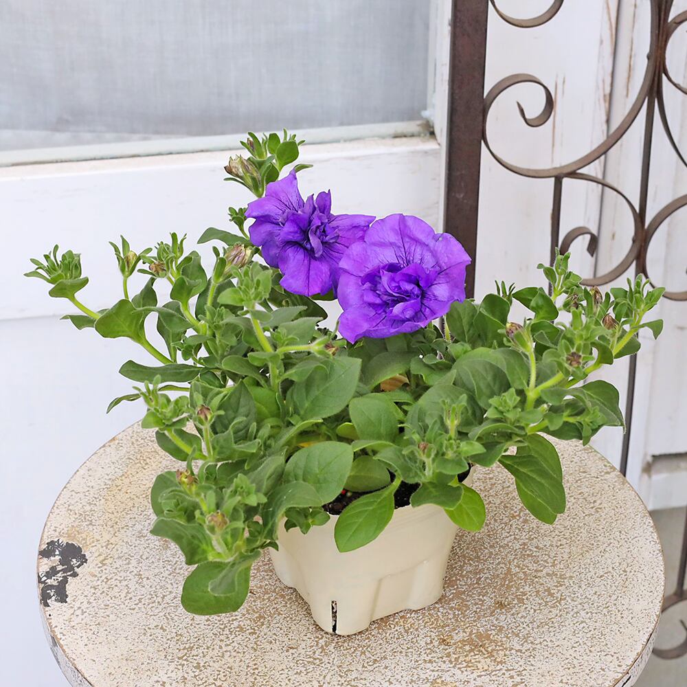 豪華な八重咲き深みのあるブルー系パープルの色合いが大人シックな印象のペチュニアです。