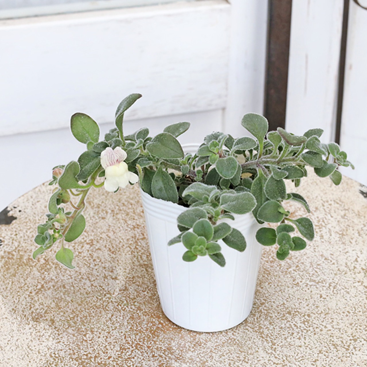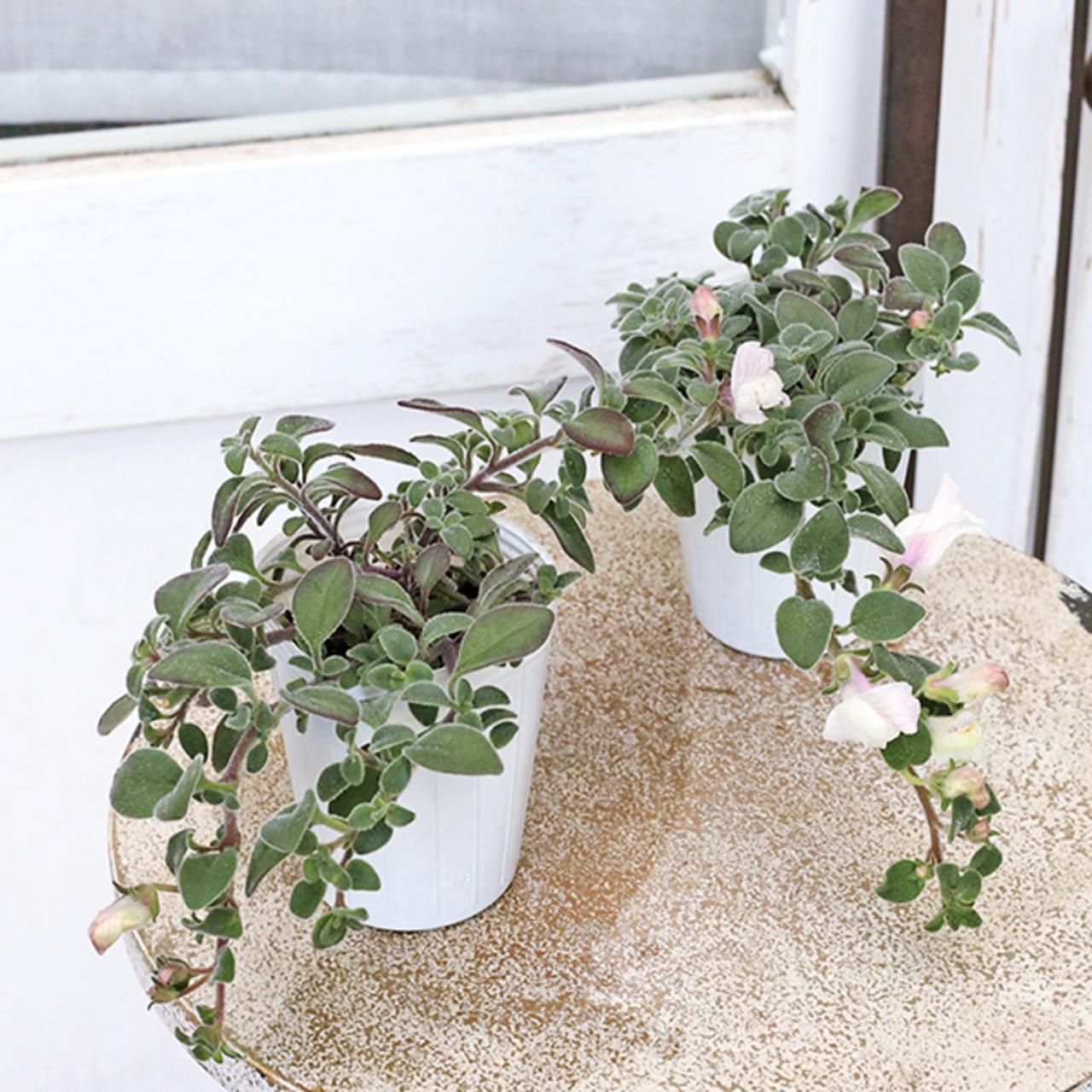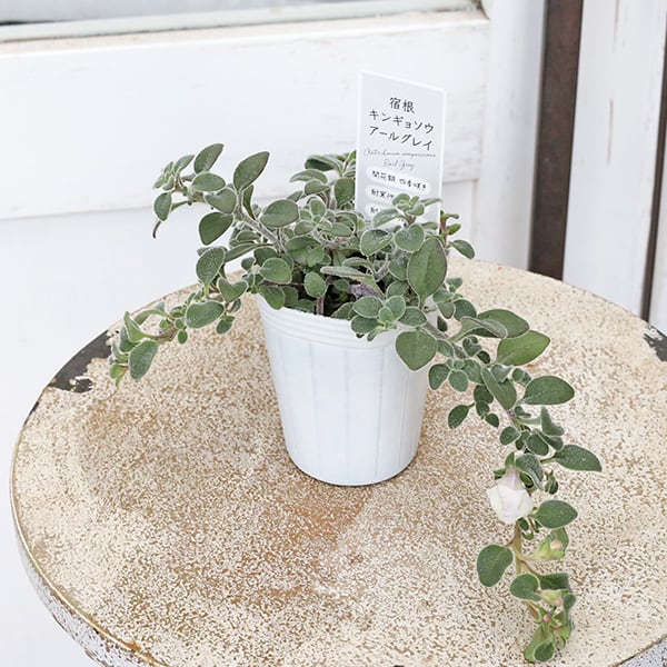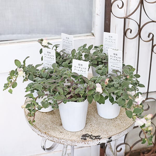 ホワイト色のキンギョに似た花が咲き、葉はシルバーグリーン色、ナチュラルな印象の這性キンギョソウ アールグレイです。