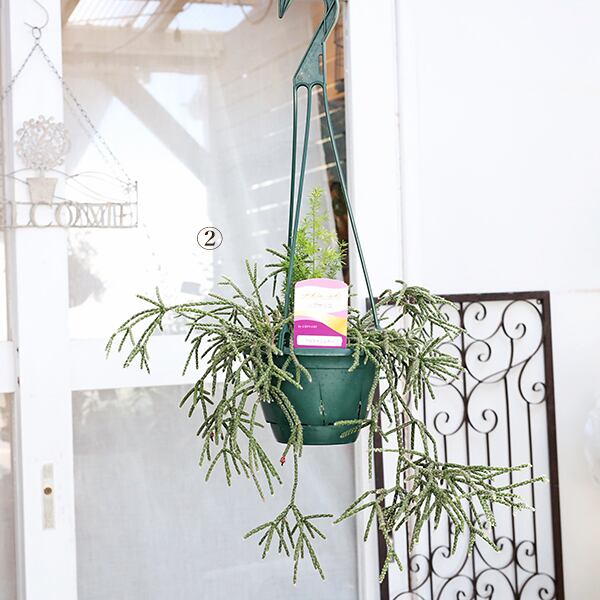 壁や天井からハンギングでぶら下げたり、置くタイプの鉢に植え替えてテーブルや棚のアクセントグリーンに♪