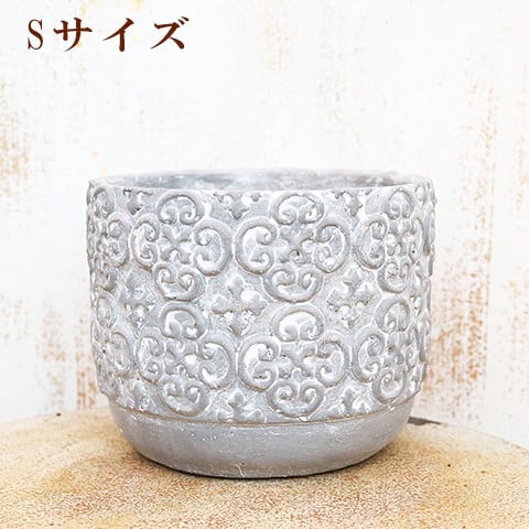 (Sサイズ 径16×H14cm 口径:14cm 深さ12.5cm 材質:セメント 色:グレー)