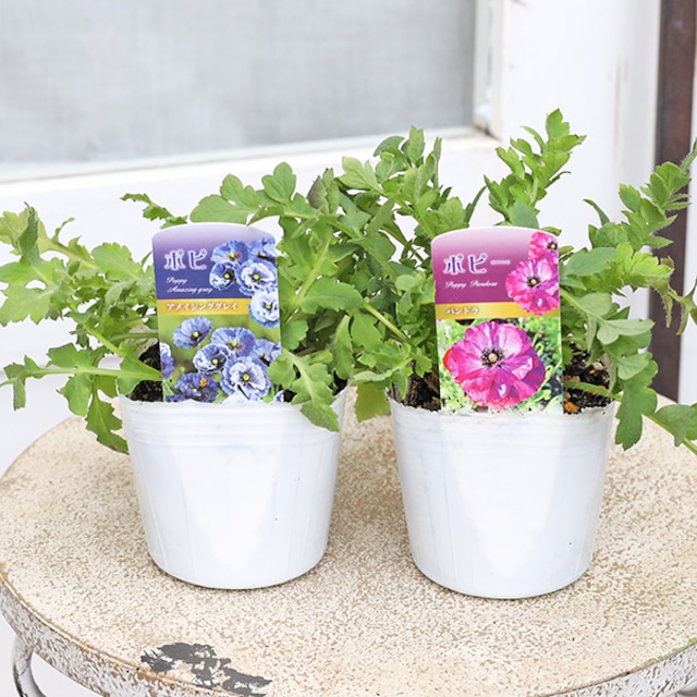 花苗 ポピー パンドラ アメイジンググレイ 3号(9cm)です。 種類は、パンドラ、アメイジンググレイからお選びください。 ヨーロッパ原産のヒナゲシの園芸品種で、開花期の春から初夏にたくさんの花が咲く一年草です。 パンドラは、ピンクからワインレッド、ダークなバーガンディ色。 アメイジンググレイは、ブルー系~パープル、グレイッシュな色合い。 アンティークタッチのおしゃれな色合い、どちらも色幅があります。咲くまで色がわかりません。 咲くまでの蕾の膨らみもうつむき加減でそれもユニークで愛らしいです。 耐寒性があり、やや乾燥に耐えるところあり、丈夫で育てやすいです。 一株でもたくさん花が咲き、草丈40~70cmありますので、花壇では中段から後方のボーダーラインに活用できます。 こぼれ種で翌年も咲きます。 花壇、鉢植え、切り花に活躍します。 科名 ケシ科 属名 ケシ属 一年草 開花期 春~初夏 耐寒 -10℃ *育て方* 水はけ風通し良い、半日陰~日当たりの良いところで管理します。 水やりは土の表面が乾いたらたっぷりあげます。 植え付け時に元肥を混ぜて、やせ地でも育ちます。肥料はそれほど必要としません。 花後種を採取し秋植えにします。こぼれ種でも翌年咲いたりします。 *植物は日々生長していますので、お届け時は写真と変わっている場合がございます。 *開花株の販売は咲き終わった花は摘み取りますので、花は咲いていない株でお届けする場合もあります。 *おまとめ買いは同梱します。送料が変わる場合は改めてご連絡いたします。 *北海道・沖縄県への発送は佐川急便またはゆうパックを利用します。 *夏場は配送中トラックの中が高温となる為、受け取り次第すぐに風通しの良い半日陰に置いてください。 *冬季の寒冷地への発送はご遠慮させて頂いております。 *発送は通常2、3日以内(定休日を除く)に対応させて頂いております。 *ご不明な点がございましたらお気軽にご連絡くださいませ。