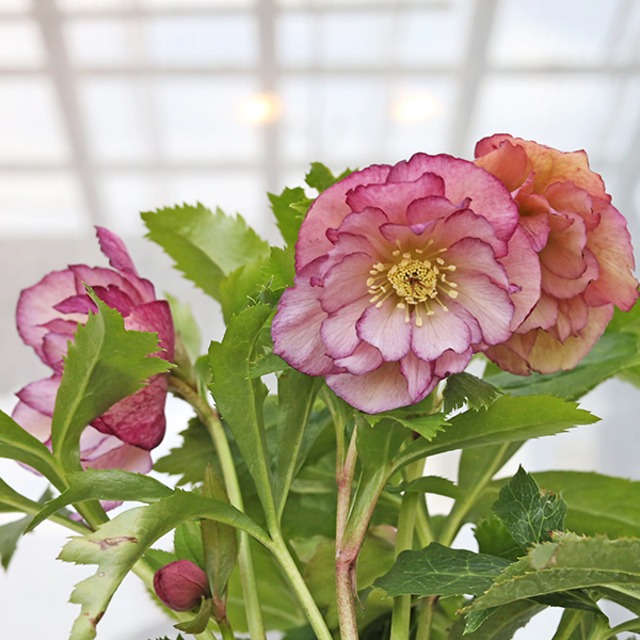 現品販売 花苗 クリスマスローズ 開花株 八重咲き 一重咲き 4号(12cm)です。 4番~11番からお選びください。 8番…ピンクとクリーム色。花弁の先に向かってピンクが濃くなる八重咲き。 9番…ワインレッド中心部が淡いピンク色八重咲き。 10番…クリーム色にワインレッドの絞り柄八重咲き。 11番…クリームイエローの八重咲き。 4番…ホワイト系半八重咲き。 5番…蕾がグリーン色のホワイト系八重咲き。 6番…小輪一重咲きグリーンホワイト色。 7番…ホワイトピンクの縁取り八重咲き。 性質は丈夫で年々株は大きくなり花数も増えます。 鉢植えでも庭植えでも楽しめます。 人気のクリスマスローズ。冬の花が少ない時期に華やかに咲きます。 科名 キンポウゲ科 属名 ヘレボラス 耐寒性 耐寒性多年草 開花期 1月~4月 *育て方* 秋から春は日が当たるところで管理し、夏は風通しの良い半日陰の場所で管理します。 水やりは土の表面が乾いたらたっぷりと与えます。 肥料は10月と花後4~5月頃に緩効性肥料を与えます。 古い葉は11月頃に切り落とします。 大きくなった株は株分けしてください。 *植物は日々生長していますので、お届け時は写真と変わっている場合がございます。 *開花株の販売は咲き終わった花は摘み取りますので、花は咲いていない株でお届けする場合もあります。 *おまとめ買いは同梱します。送料が変わる場合は改めてご連絡いたします。 *北海道・沖縄県への発送は佐川急便またはゆうパックを利用します。 *夏場は配送中トラックの中が高温となる為、受け取り次第すぐに風通しの良い半日陰に置いてください。 *冬季の寒冷地への発送はご遠慮させて頂いております。 *発送は通常2、3日以内(定休日を除く)に対応させて頂いております。 *ご不明な点がございましたらお気軽にご連絡くださいませ。